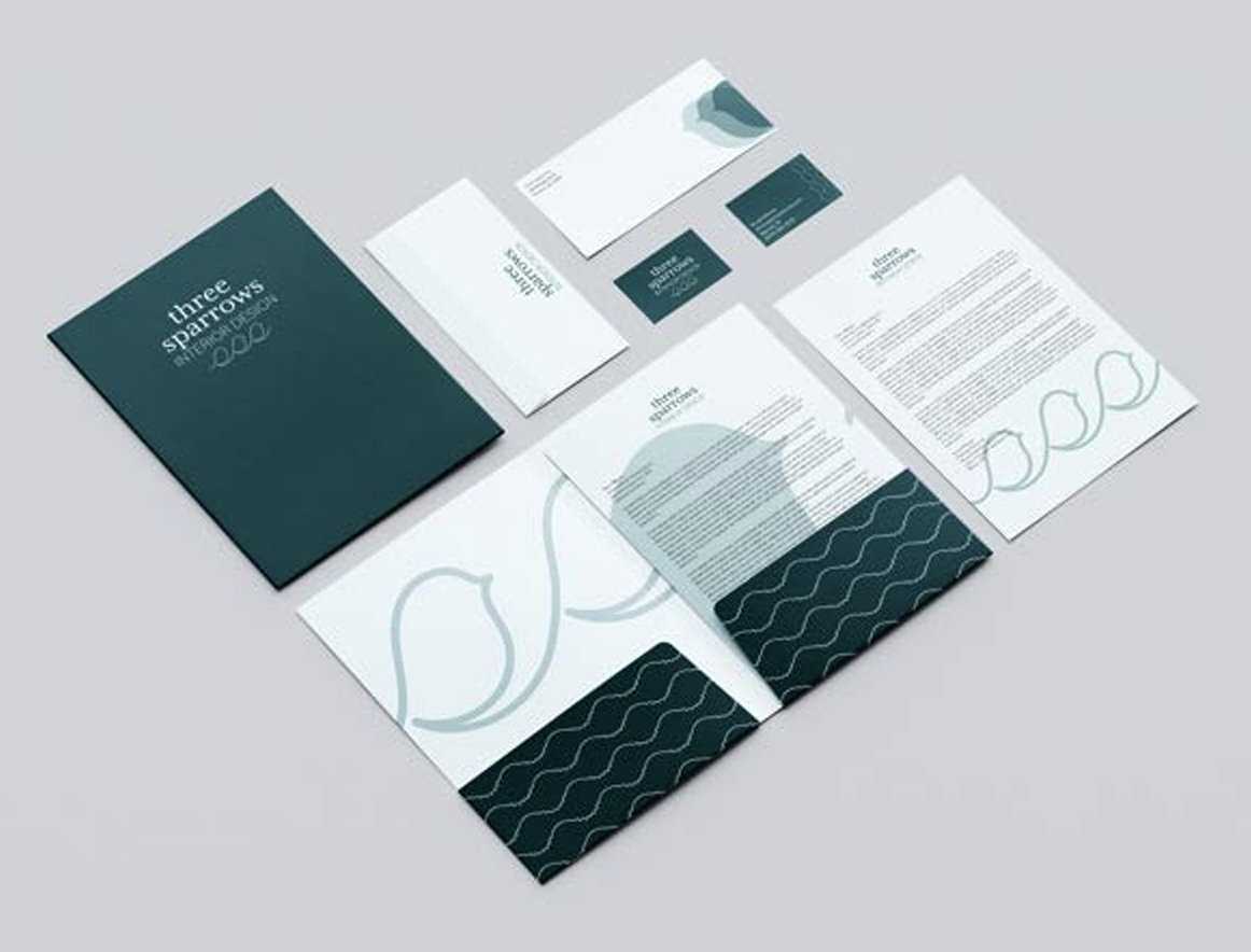 Three Sparrows Interior Design is an interior design company out of Warren, RI. Their design style can be described as coastal, minamalistic, and modern! The concept for their rebarnd was to achieve an identity that felt fresh, and emulated the companies values of balance and togetherness. This project included a brand identity and applications such as business cards, folders, letterheads, envelopes, tote bags, mugs, signage, a website page, keychains, and more!Â